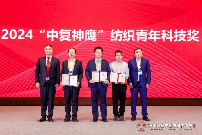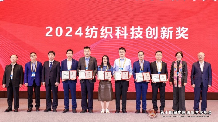 喜报|我院多位教师荣获第十四届中国纺织学术年会大奖 发布时间:2024-10-28 10月26-27日,由中国纺织工程学会主办的第十四届中国纺织学术年会在安徽芜湖举行。本届学术年会以“新质学术、责任创新、科学发展”为主题,设置1个主会场和16个分会场。中国纺织工业联合会及相关专业协会、纺织工程学会领导,全国高等院校、科研机构、企业事业单位等代表线下参会。纺织学院王富军教授、纺织学院王先锋研究员荣获2024纺织科技创新奖,纺织学院王黎明研究员荣获2024“中复神鹰”纺织青年科技奖。同期,纺织学院、纺织面料技术教育部重点实验室、产业用纺织品教育部工程研究中心和上海市现代纺织前沿科学研究基地联合承办“纺织前沿科学与技术”分会场。 第十四届中国纺织学术年会“纺织前沿科学与技术”分会场由院长覃小红和陈南梁教授、副院长王富军主持会议。